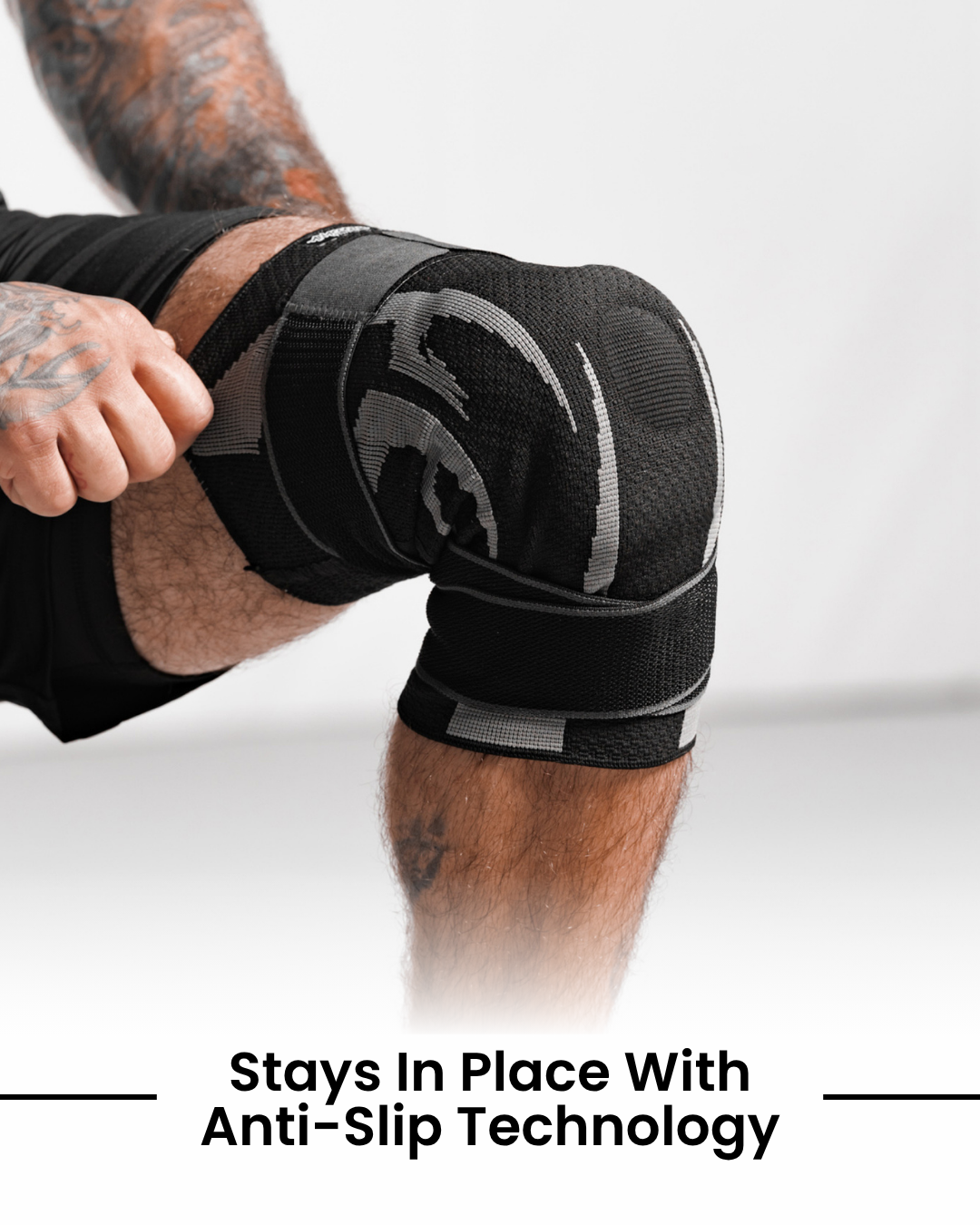 Most knee braces end up sliding down or falling off completely in the middle of rounds.